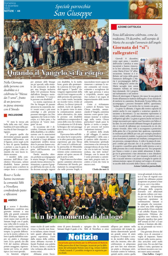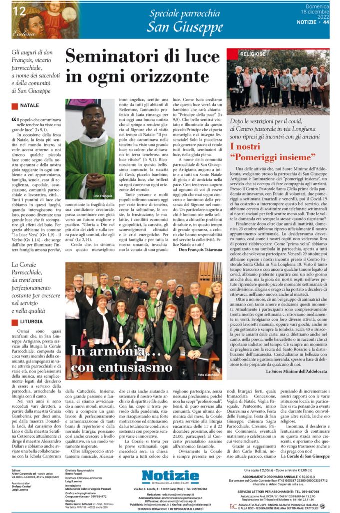 Speciale parrocchia San Giuseppe su Notizie del 18/12/22