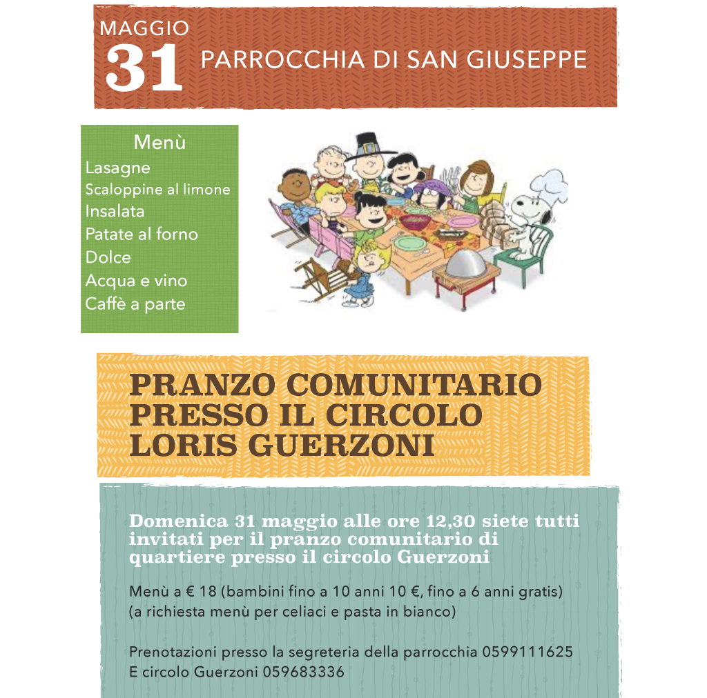 siete tutti invitati per il pranzo comunitario di quartiere presso il circolo Guerzoni..