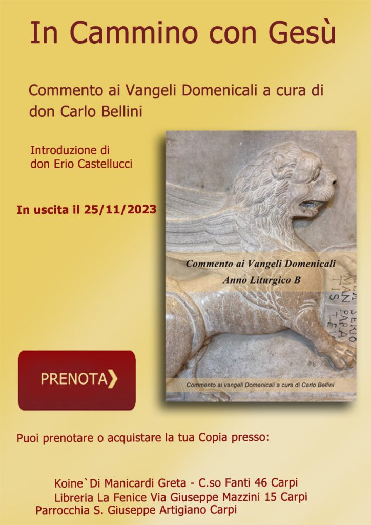 Commento ai Vangeli Domenicali a cura di don Carlo Bellini Prenotazioni presso: Koinè –>Corso Manfredo Fanti 46 – 41012 Carpi (MO) – Tel. 059 684037 Libreria “La Fenice” –>Via Giuseppe Mazzini 15 – 41012 Carpi – Tel 059 641900 Parrocchia San Giuseppe Artigiano –>Via Remesina Interna 56 – 41012 Carpi (MO) – Tel 059 911 …