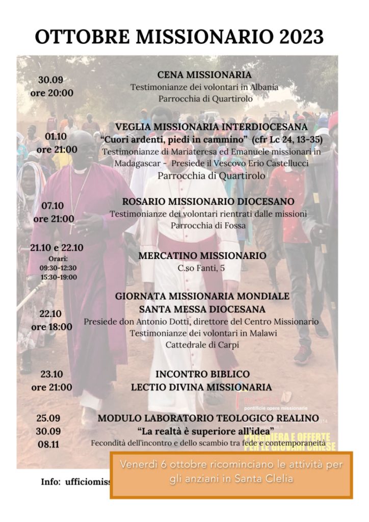 L’Ufficio interdiocesano Migrantes di Modena e Carpi sta lavorando alla Giornata mondiale del migrante e rifugiato (GMMR), che da qualche anno si tiene all’inizio dell’anno pastorale e che nel 2023 ricorre domenica 24 settembre. L’edizione 2023, dal titolo “Scegliere se migrare o restare”, si svolgerà presso la parrocchia di San Giuseppe Artigiano a Carpi (via Remesina 56). Questo di seguito …