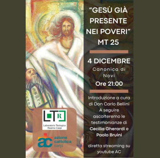Iniziative nella Giornata mondiale dei poveri Veglia di preghiera e testimonianze il 18 novembre a Limidi di Soliera La Caritas diocesana di Carpi, in stretta collaborazione con la Caritas di Modena, organizza in occasione della Giornata dei poveri una speciale iniziativa, che si colloca nell’ambito del Percorso formativo sul Vangelo di Matteo organizzato dal Laboratorio …