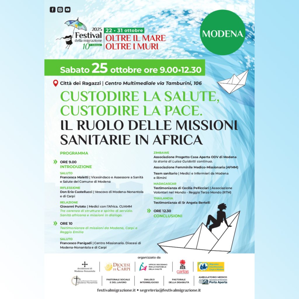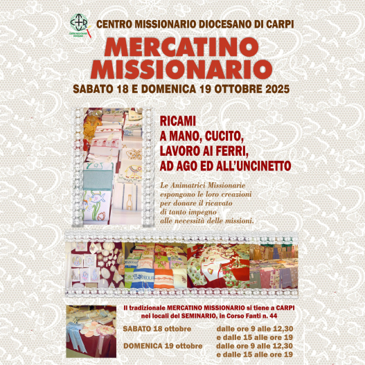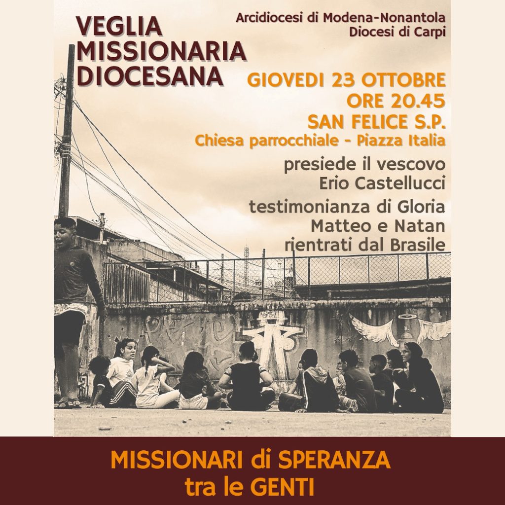 La Veglia missionaria costituisce il fulcro di tutte le attività di animazione dell’Ottobre Missionario. L’edizione 2025 dal titolo: “Missionari di Speranza tra le genti” è stata pensata e realizzata in sinergia tra l’Arcidiocesi di Modena-Nonantola e la Diocesi di Carpi. La novità di quest’anno è che la celebrazione interdiocesana sarà proposta in due parrocchie differenti. …