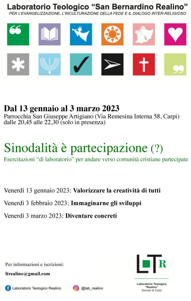Come in tutte le cose della vita la buona volontà non basta, ci vuole intelligenza, applicazione e forse arte.Questo laboratorio si rivolge a tutti coloro che credono sinceramente che il futuro delle nostre comunità sia legato a quello che chiamiamo sinodalità.In queste tre serate proveremo ad esercitarci a immaginare e progettare insieme passi innovativi per …