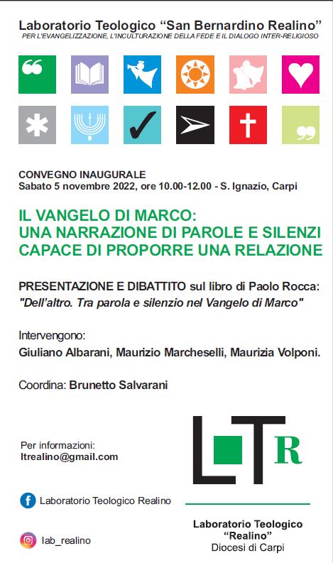 Sabato 5 novembre, dalle 10.00 alle 12.00, nella chiesa di Sant’Ignazio-Museo diocesano a Carpi (Corso Fanti 44), si terrà il convegno inaugurale del Laboratorio Teologico “San Bernardino Realino” per l’evangelizzazione, l’inculturazione della fede e il dialogo interreligioso. “Il vangelo di Marco: una narrazione di parole e silenzi capace di proporre una relazione” è il titolo …